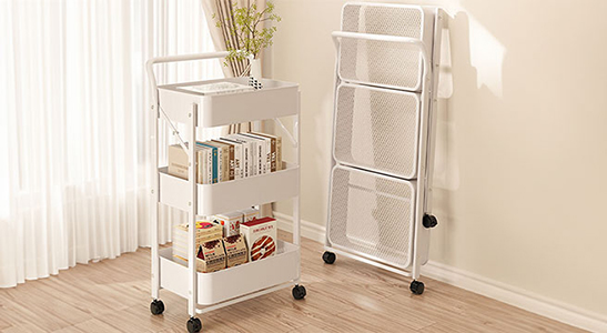 - 접이식 3단 이동식 트롤리 무조립 손잡이 선반 수납 슬림 서빙 카트 미용실 귀저기정리